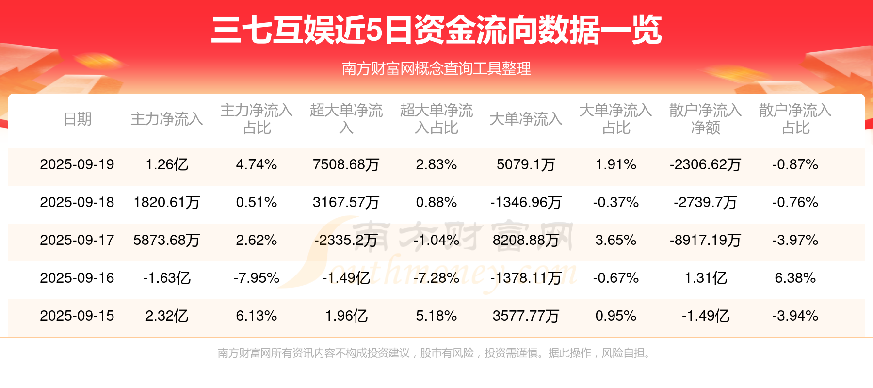 截至9月19日下午三点收盘,三七互娱报23.540元,涨1.25%,换手率7.07%,成交量1.13亿手,市值为520.76亿元。
