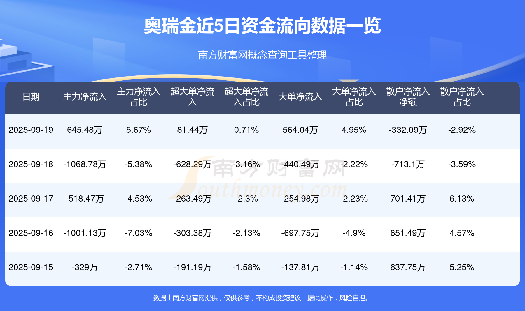 9月19日收盘最新消息,奥瑞金昨收5.61元,截至下午三点收盘,该股涨0.89%报5.660元 。