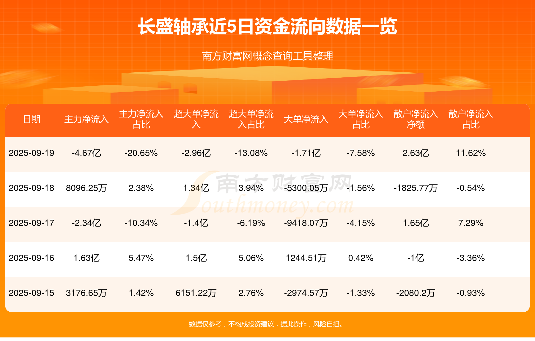 近5日资金流向一览见下表:
