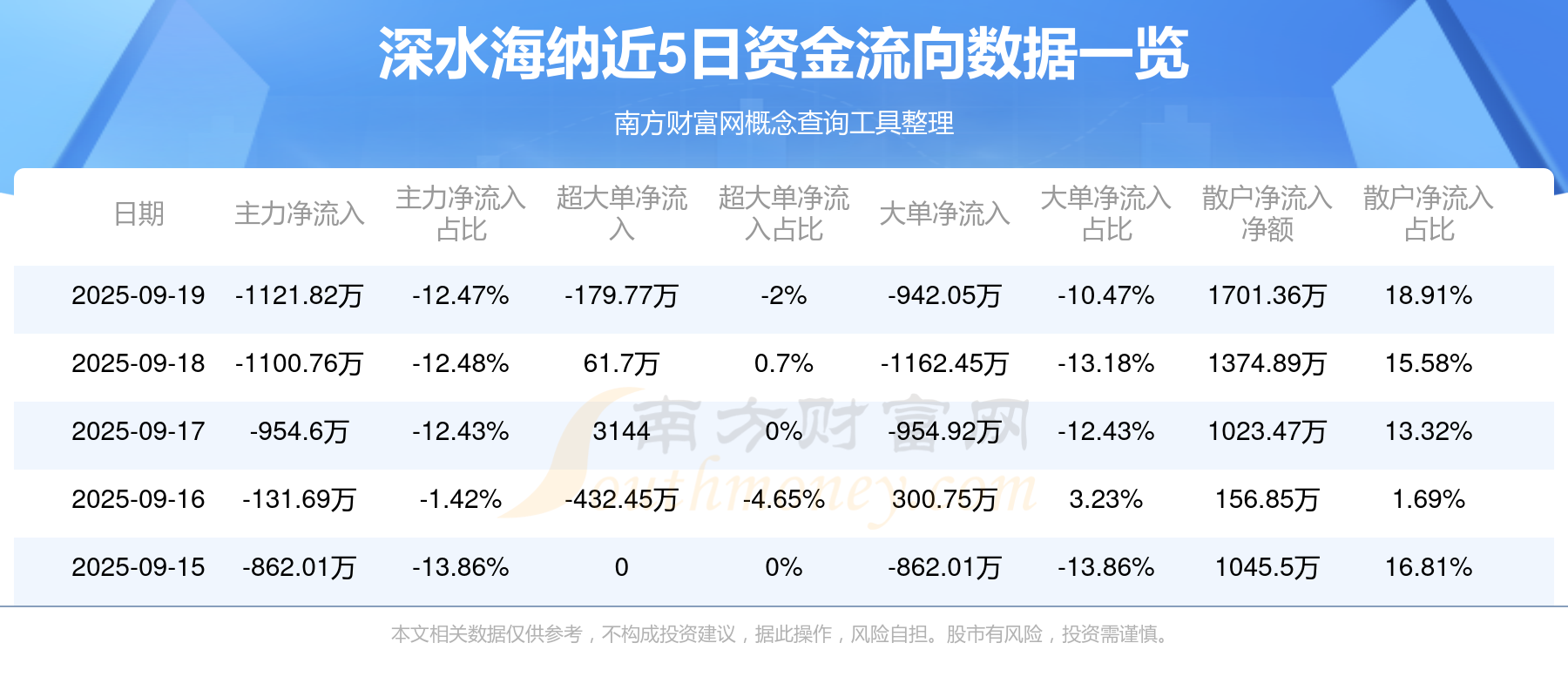 9月19日收盘消息,深水海纳报16.010元/股,跌2.85%。今年来涨幅上涨37.23%,成交总金额8996.83万元。