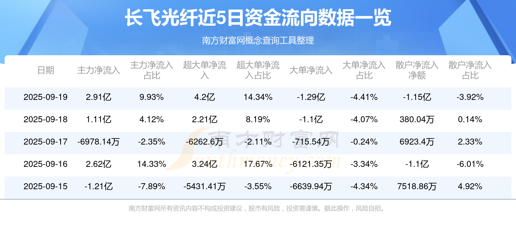 9月19日该股主力资金净流入2.91亿元,超大单资金净流入4.2亿元,大单资金净流出1.29亿元,中单资金净流出1.76亿元,散户资金净流出1.15亿元。
