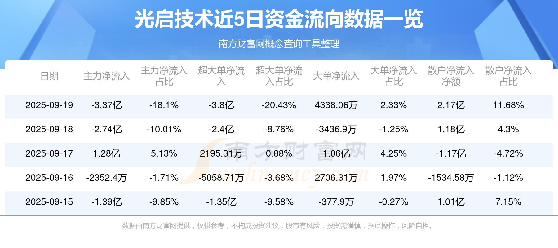 9月19日该股主力资金净流出3.37亿元,超大单资金净流出3.8亿元,大单资金净流入4338.06万元,中单资金净流入1.19亿元,散户资金净流入2.17亿元。