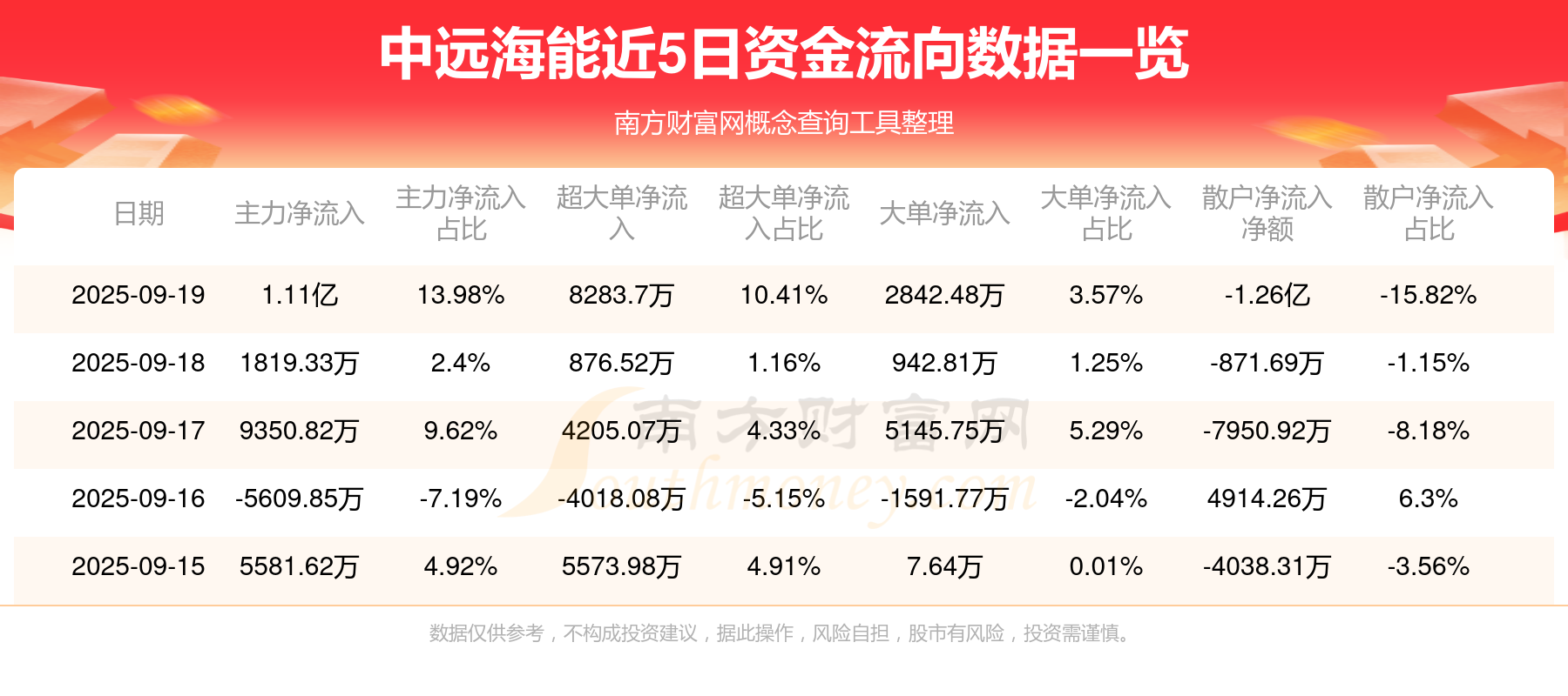 9月19日消息,中远海能资金净流入1.11亿元,超大单净流入8283.7万元,换手率1.76%,成交金额7.74亿元。