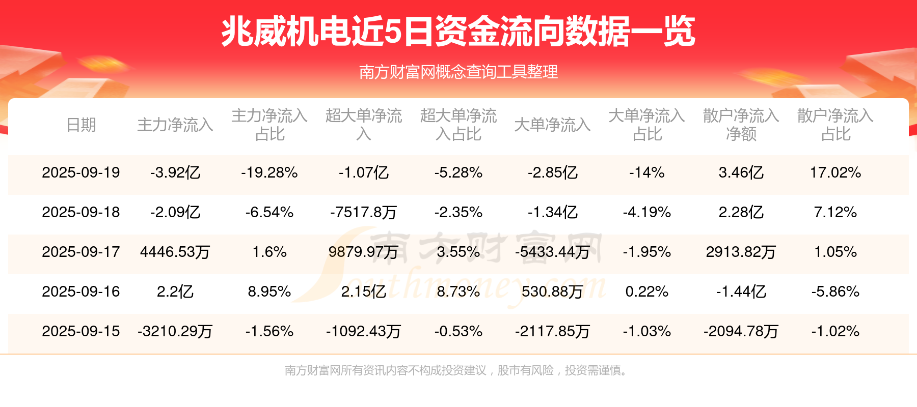 9月19日该股主力净流出3.92亿元,超大单净流出1.07亿元,大单净流出2.85亿元,中单净流入4608.53万元,散户净流入3.46亿元。