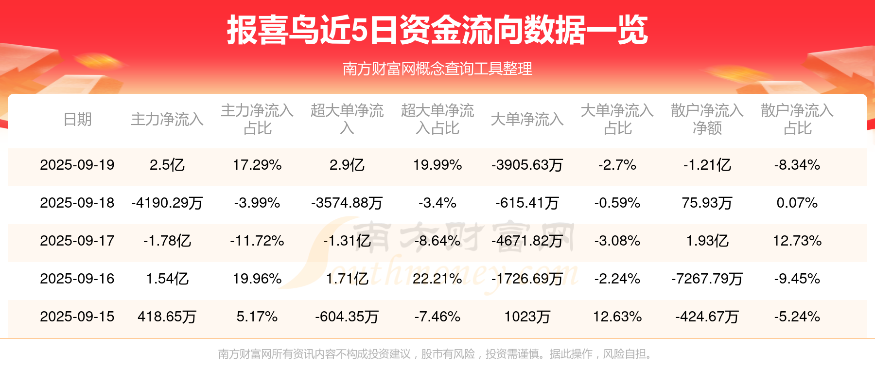 近5日资金流向一览见下表: