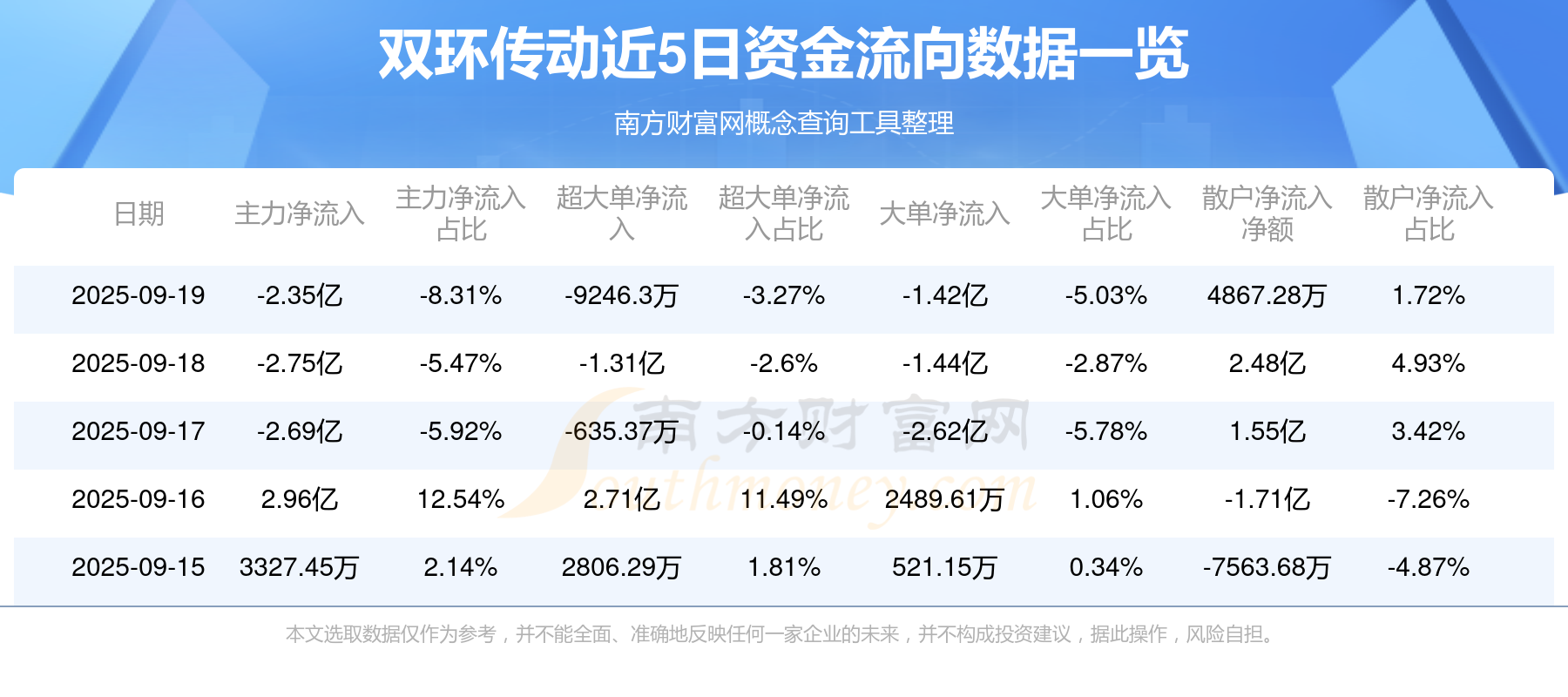 9月19日消息,双环传动(002472)开盘报48.45元,截至15时收盘,该股跌8.25%报46.690元,换手率7.91% ,成交额28.26亿元。