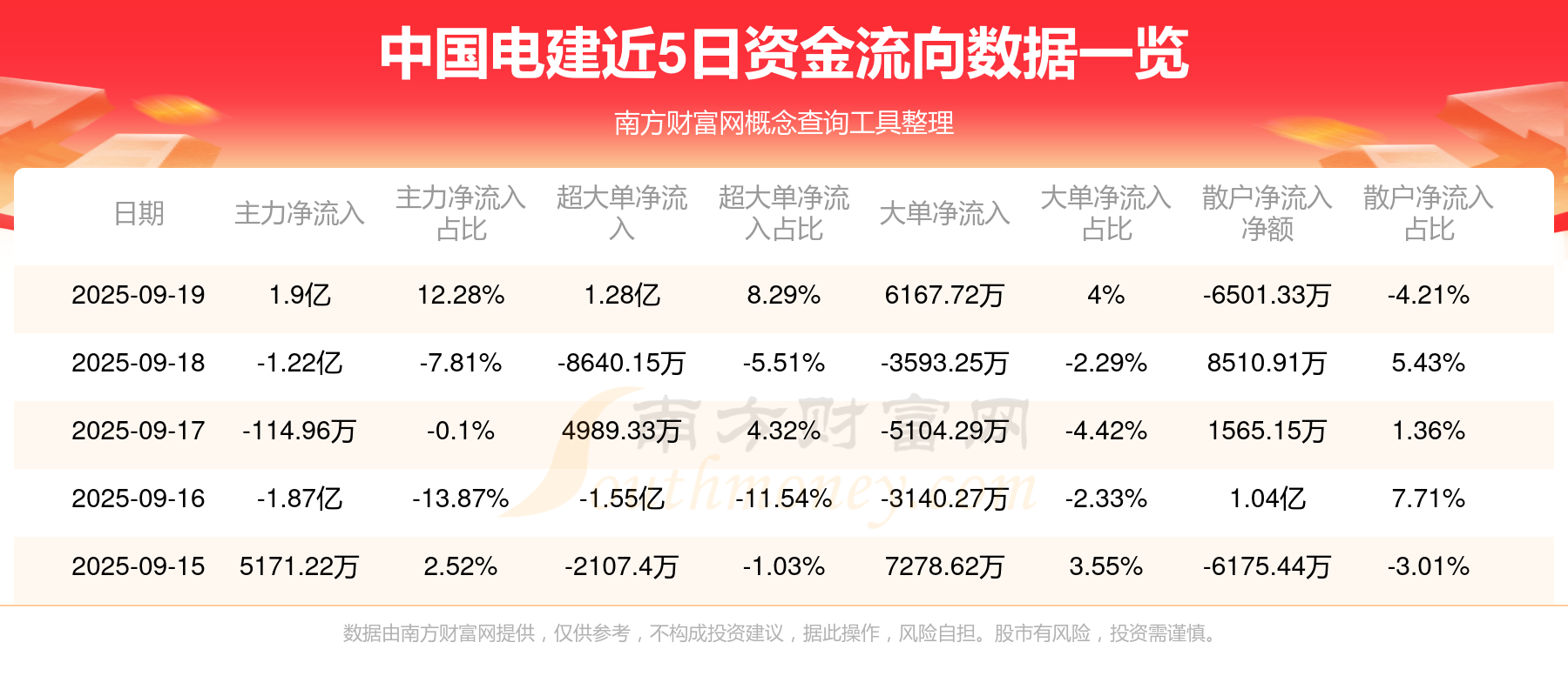 近5日资金流向一览见下表: