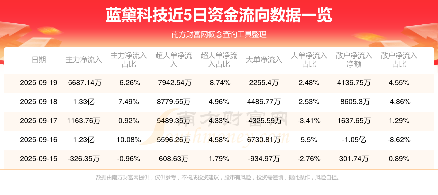 9月19日资金净流出5687.14万元,超大单净流出7942.54万元,换手率10.74%,成交金额9.09亿元。