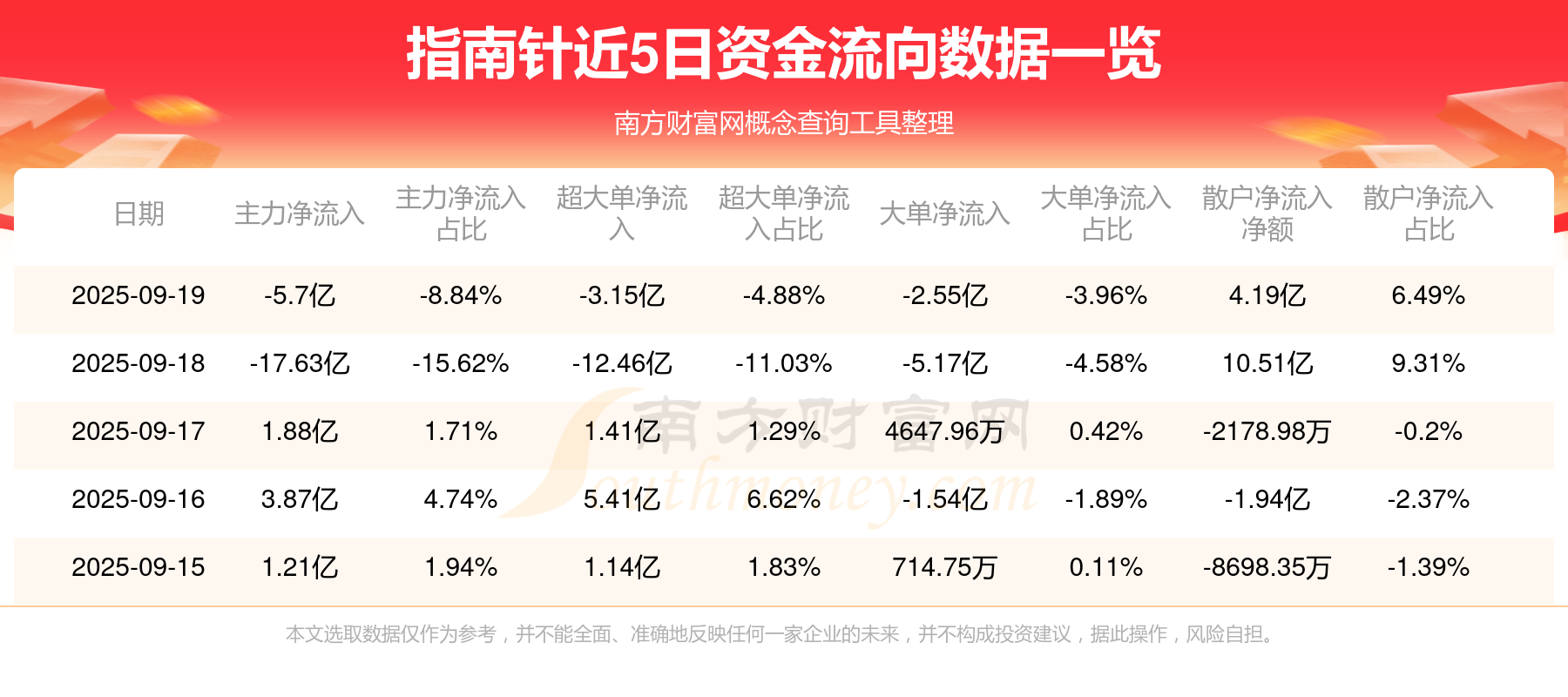 9月19日,指南针开盘报156.5元,截至15时收盘,报153.400元,成交额64.48亿元,换手率6.87%,市值为932.9亿元。