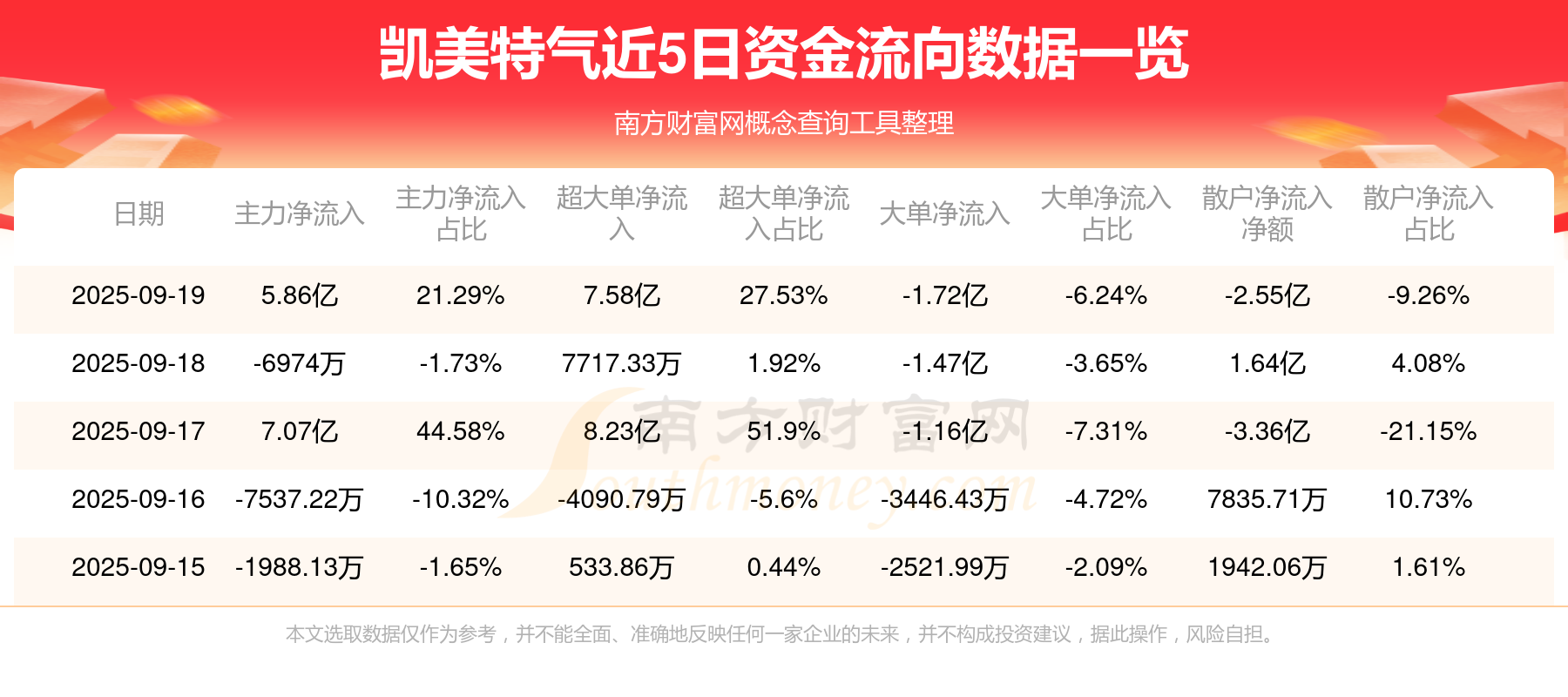 近5日资金流向一览见下表: