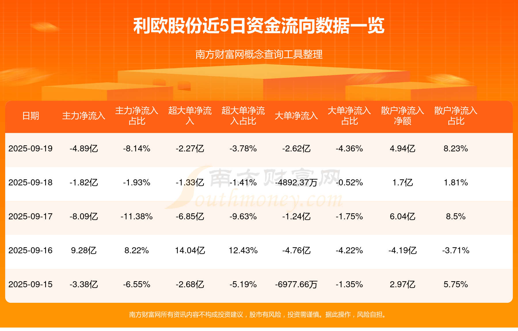 9月19日消息,利欧股份主力净流出4.89亿元,超大单净流出2.27亿元,散户净流入4.94亿元。