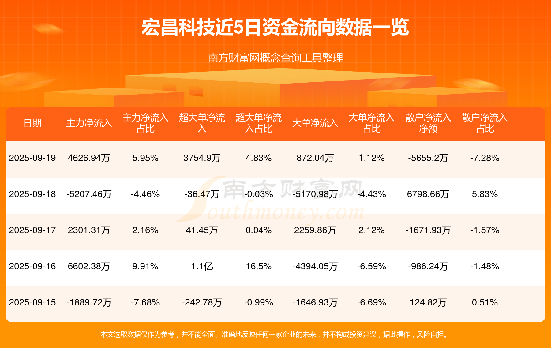 近5日资金流向一览见下表: