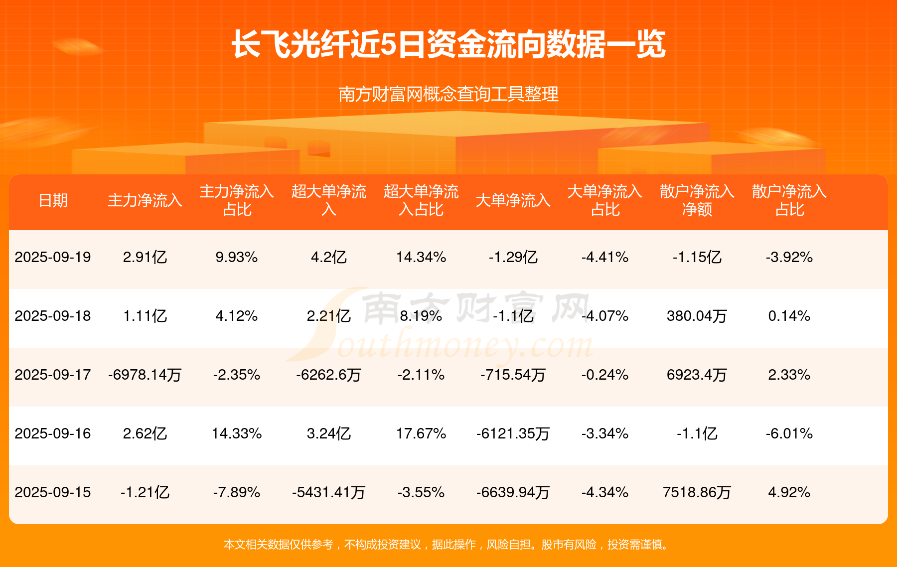 9月19日该股主力资金净流入2.91亿元,超大单资金净流入4.2亿元,大单资金净流出1.29亿元,中单资金净流出1.76亿元,散户资金净流出1.15亿元。