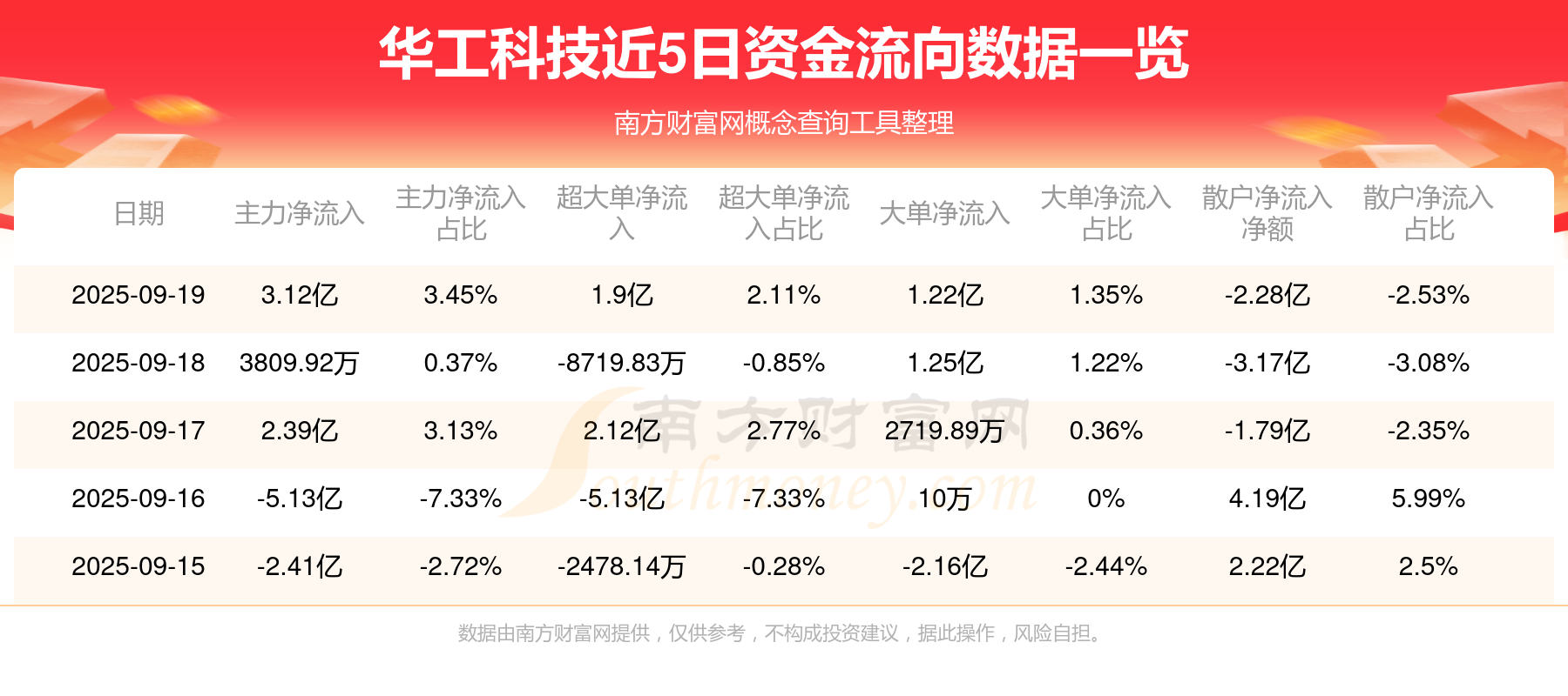9月19日消息,华工科技主力资金净流入3.12亿元,超大单资金净流入1.9亿元,散户资金净流出2.28亿元。