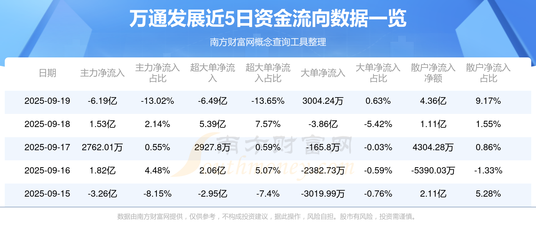 9月19日消息,万通发展资金净流出6.19亿元,超大单资金净流出6.49亿元,换手率18.08%,成交金额47.52亿元。