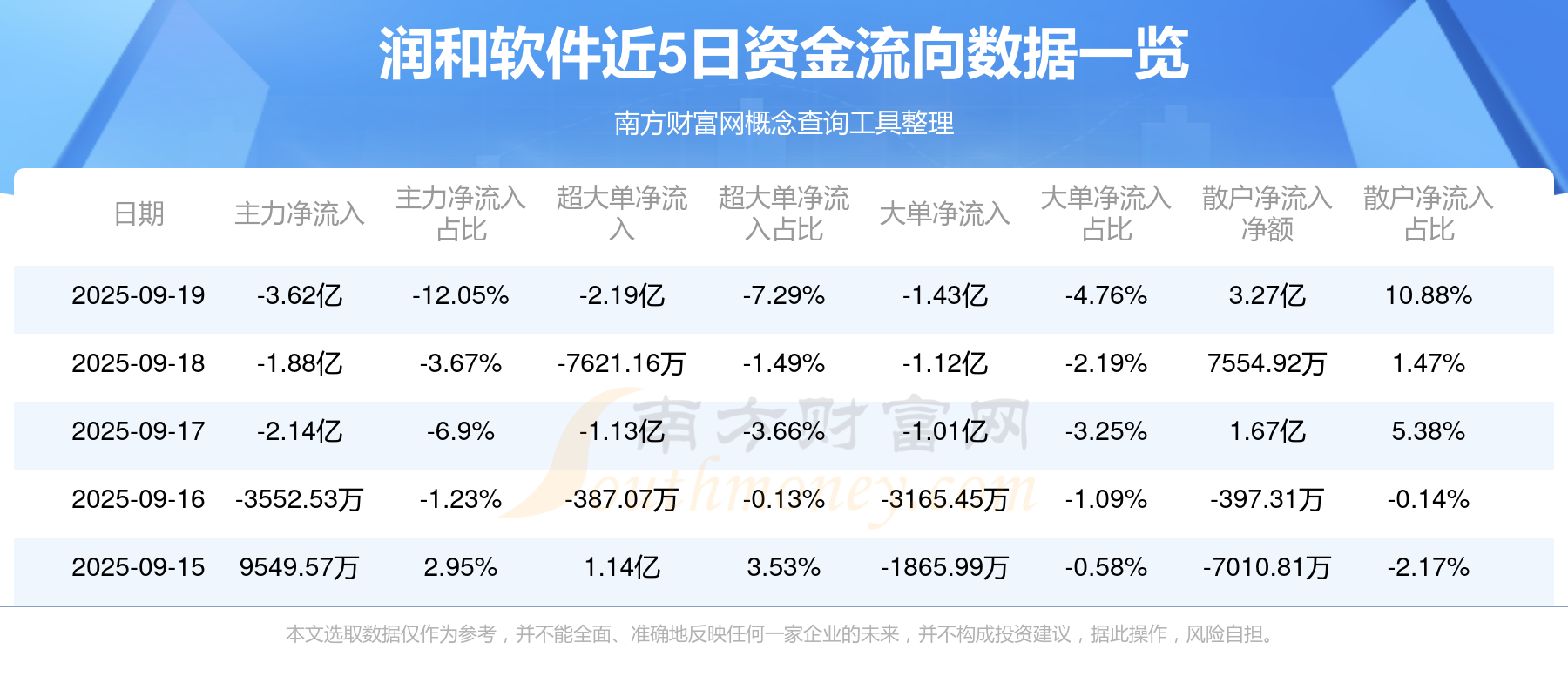 9月19日收盘最新消息,润和软件5日内股价下跌2.08%,截至15时,该股报59.620元跌1.97% 。