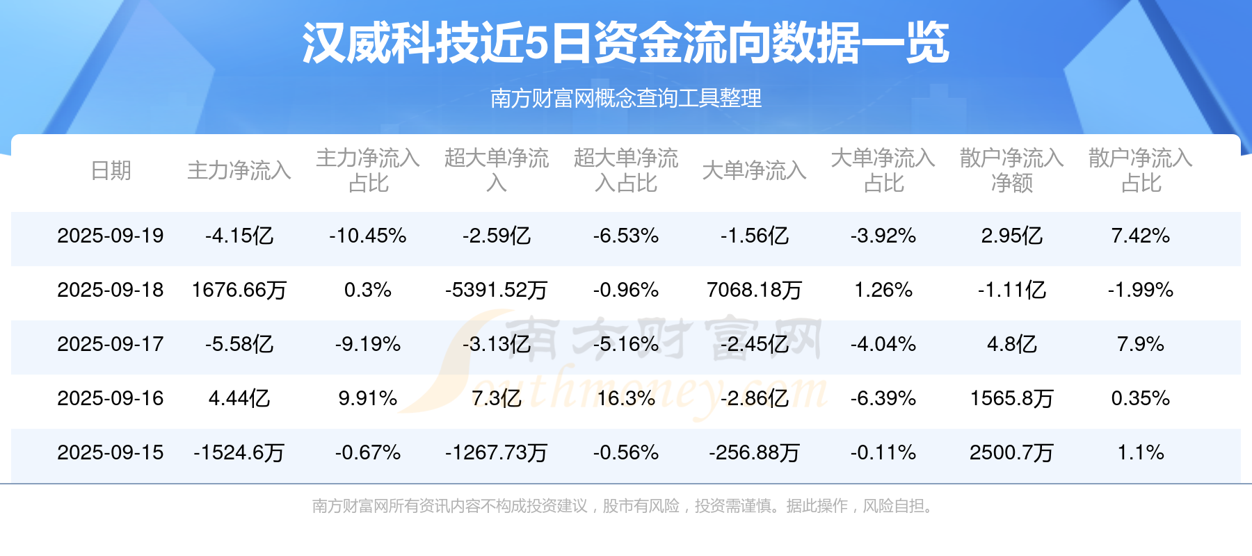 资金流向数据方面,9月19日主力资金净流流出4.15亿元,超大单资金净流出2.59亿元,大单资金净流出1.56亿元,散户资金净流入2.95亿元。