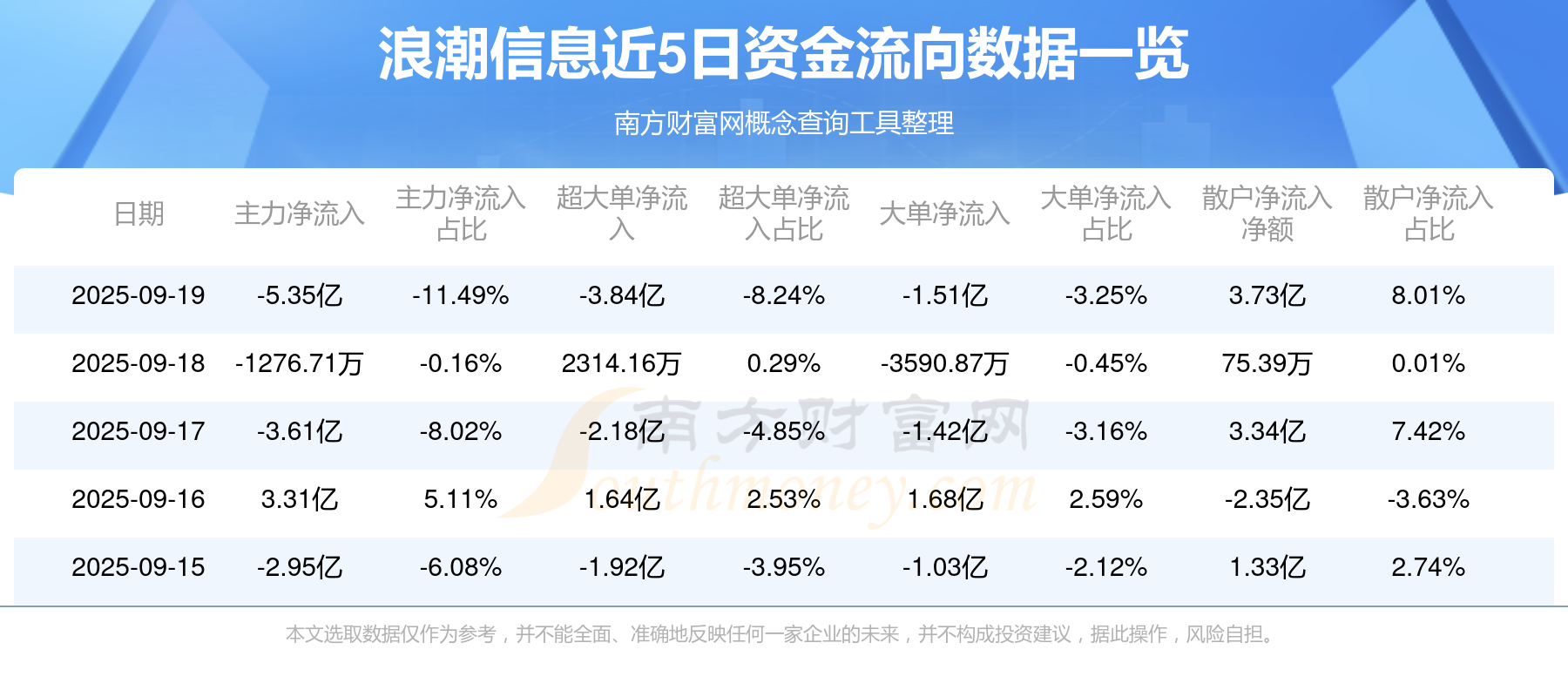 近5日资金流向一览见下表: