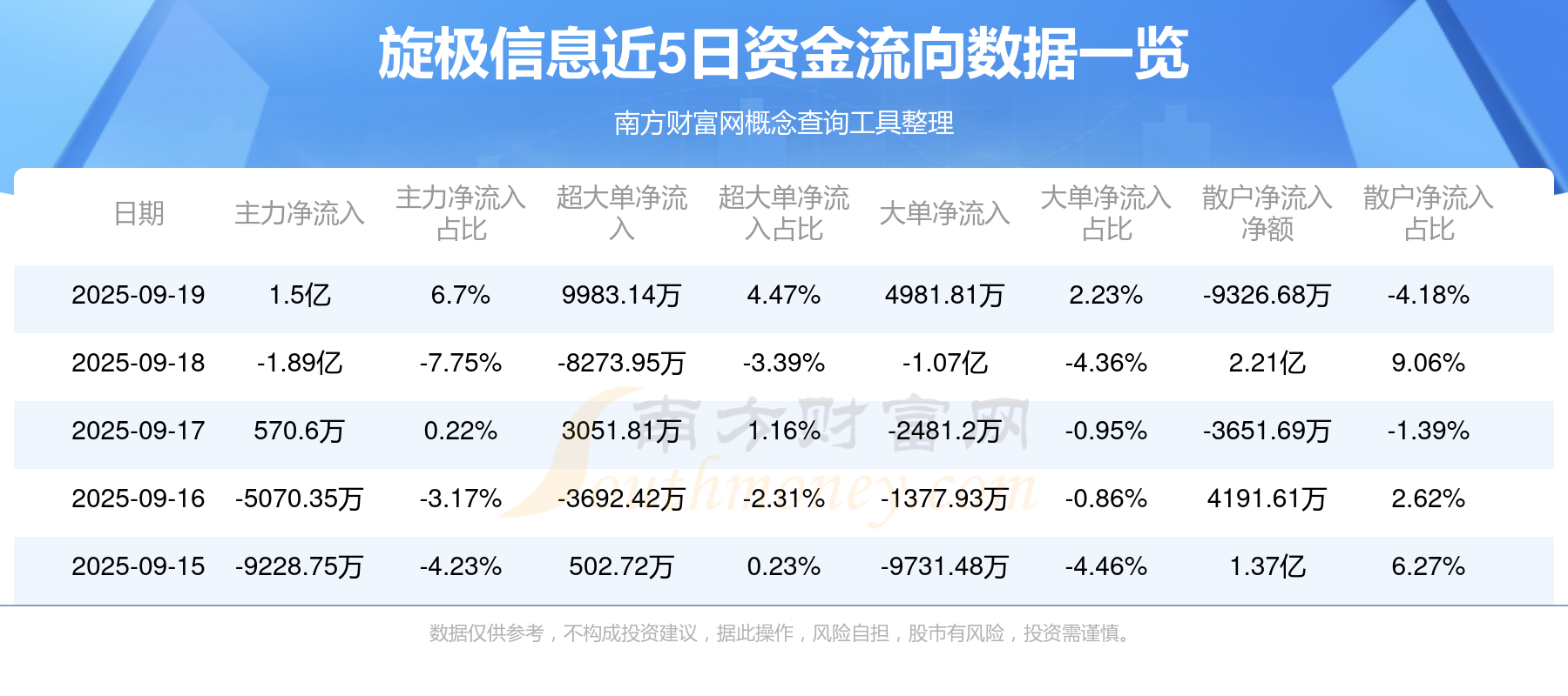 近5日资金流向一览见下表: