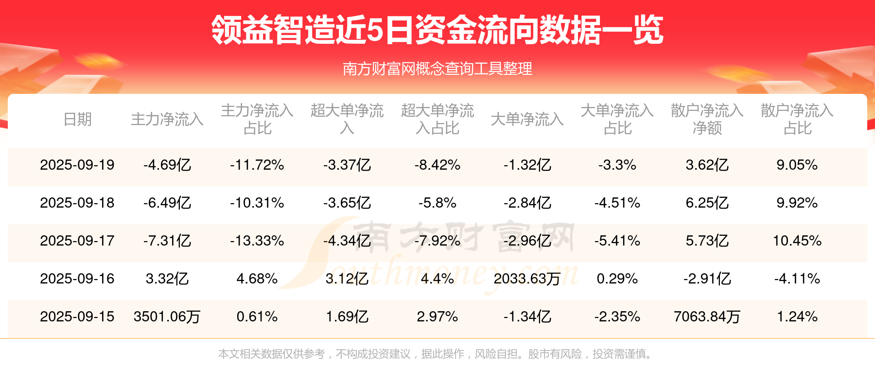 近5日资金流向一览见下表: