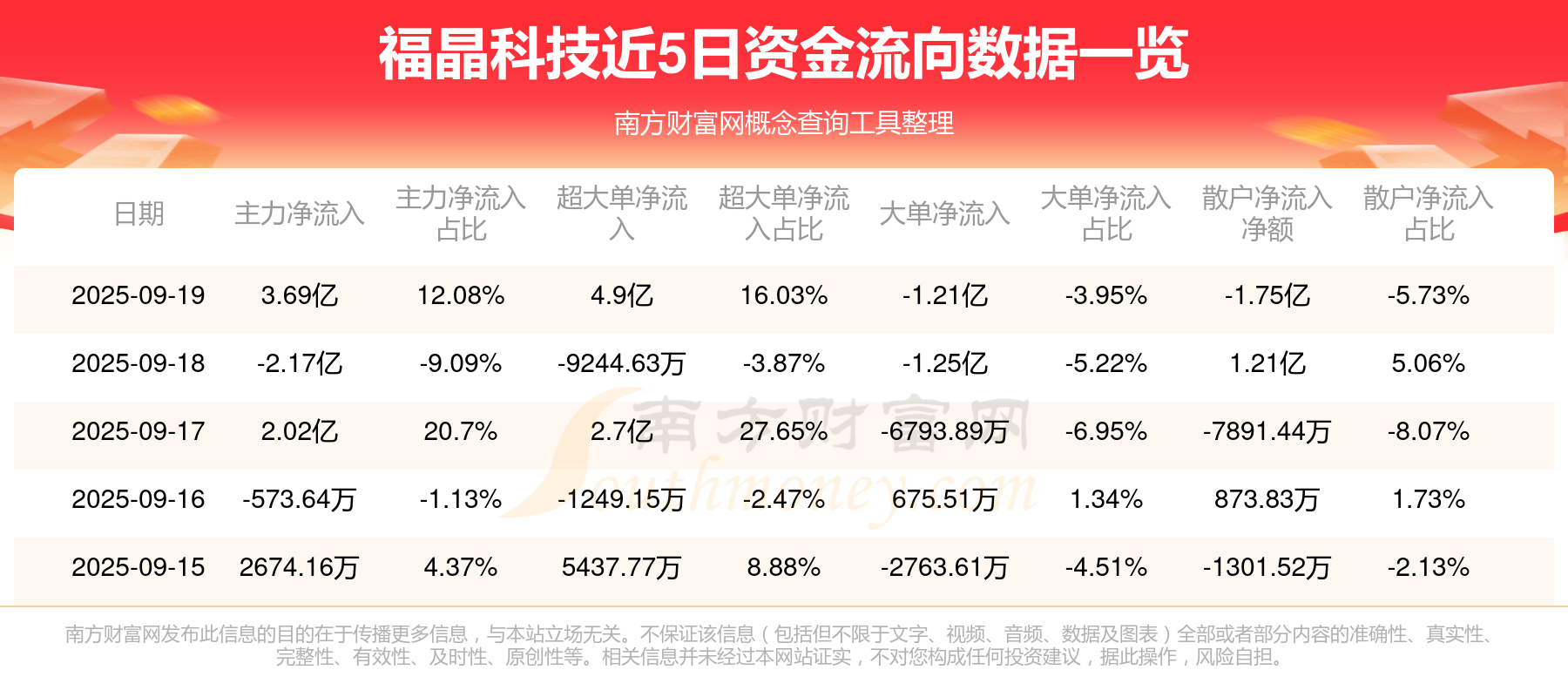 9月19日该股主力资金净流入3.69亿元,超大单资金净流入4.9亿元,大单资金净流出1.21亿元,中单资金净流出1.94亿元,散户资金净流出1.75亿元。