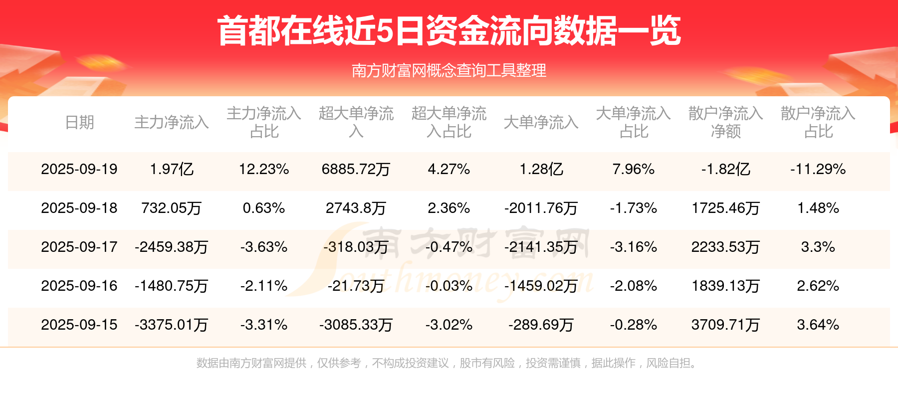 资金流向数据方面,9月19日主力资金净流流入1.97亿元,超大单资金净流入6885.72万元,大单资金净流入1.28亿元,散户资金净流出1.82亿元。