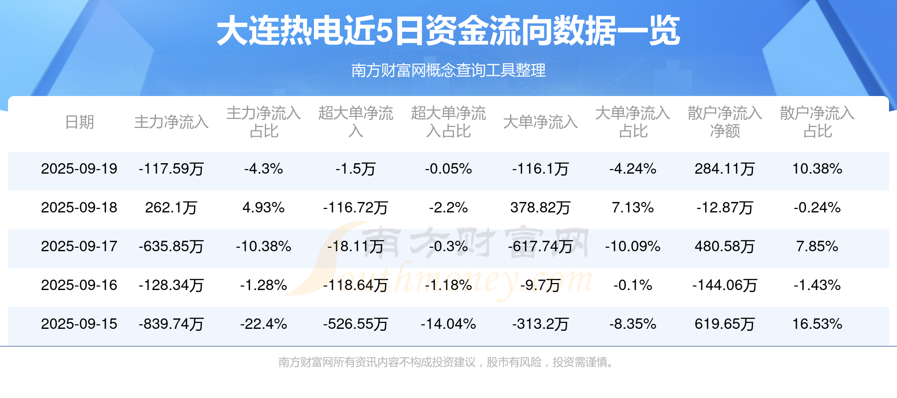 近5日资金流向一览见下表: