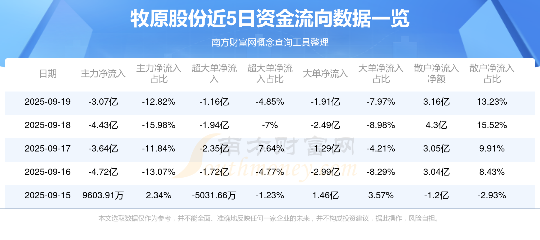 9月19日消息,牧原股份主力资金净流出3.07亿元,超大单资金净流出1.16亿元,散户资金净流入3.16亿元。