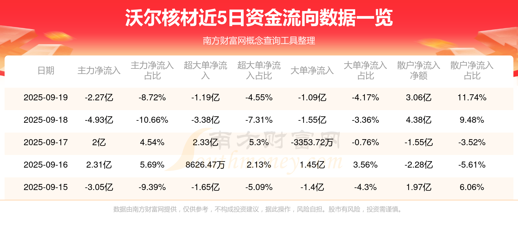近5日资金流向一览见下表: