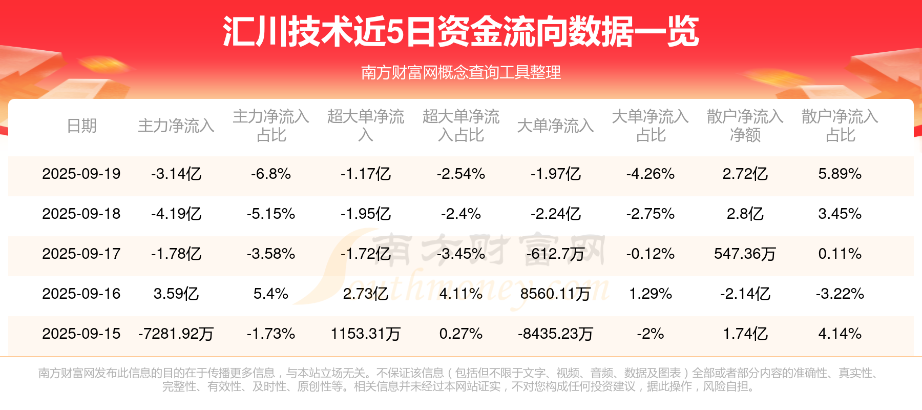资金流向数据方面,9月19日主力资金净流流出3.14亿元,超大单资金净流出1.17亿元,大单资金净流出1.97亿元,散户资金净流入2.72亿元。