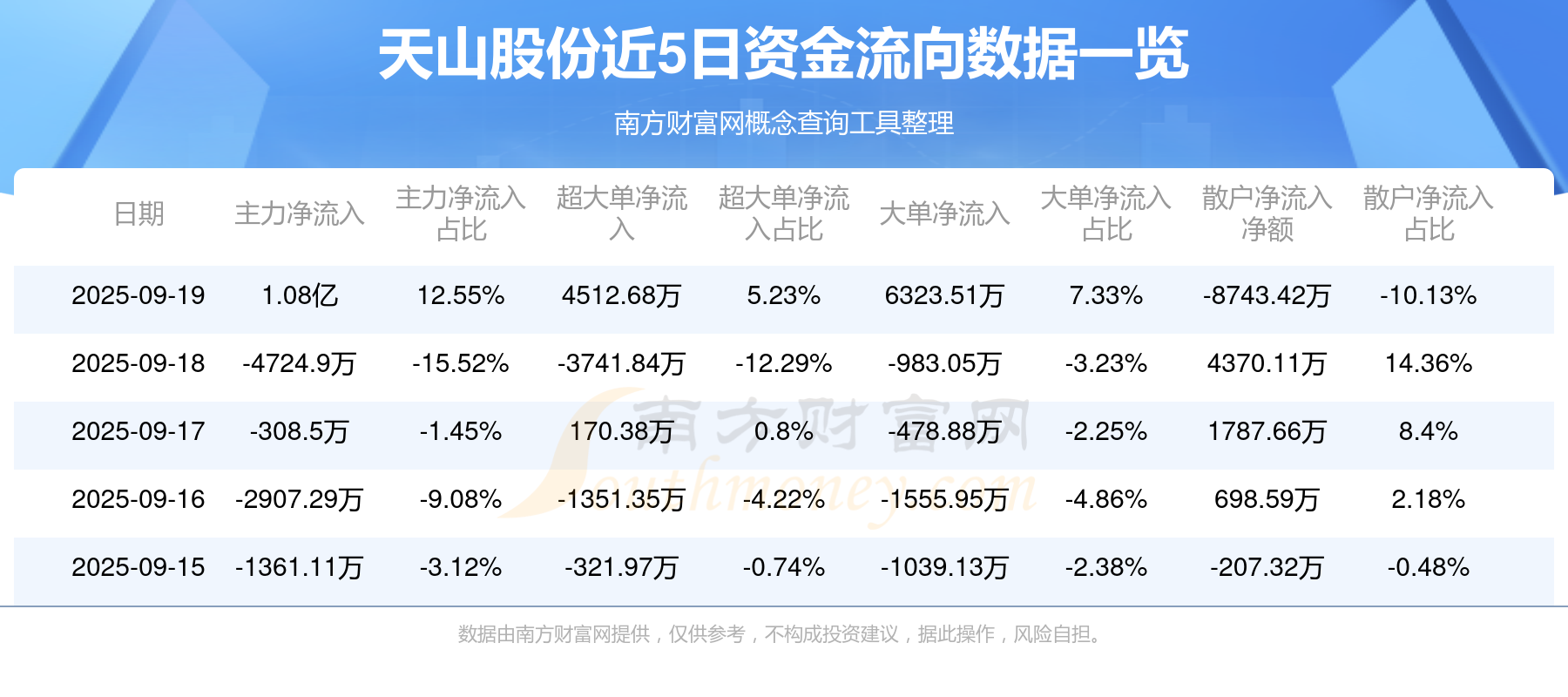 9月19日收盘消息,天山股份5日内股价上涨1.04%,今年来涨幅上涨16.02%,最新报6.740元,成交额8.63亿元。