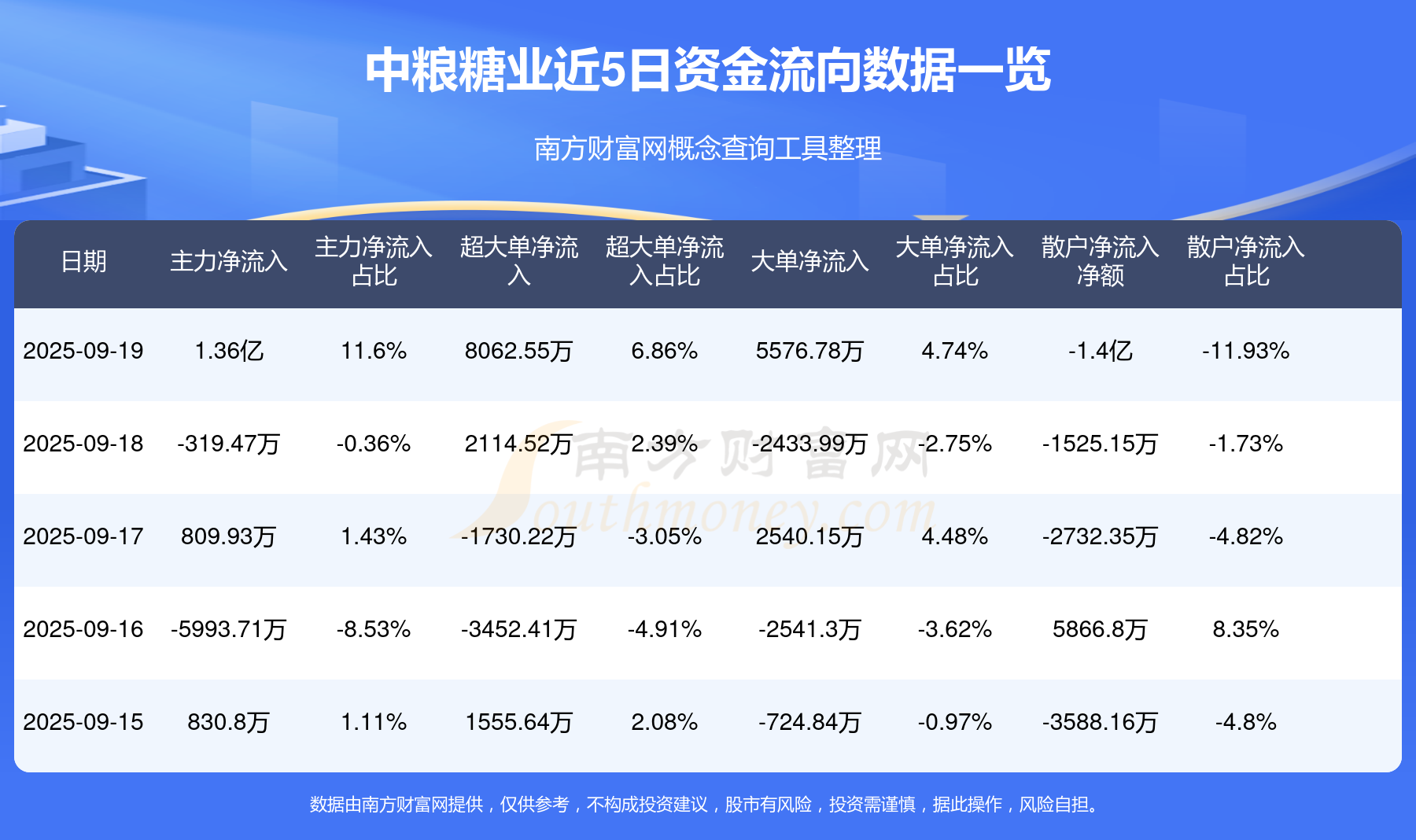 9月19日该股主力净流入1.36亿元,超大单净流入8062.55万元,大单净流入5576.78万元,中单净流入384.55万元,散户净流出1.4亿元。