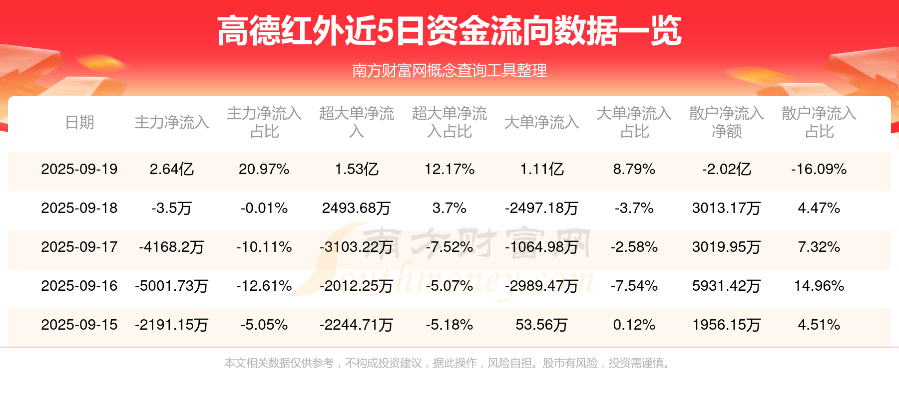 近5日资金流向一览见下表: