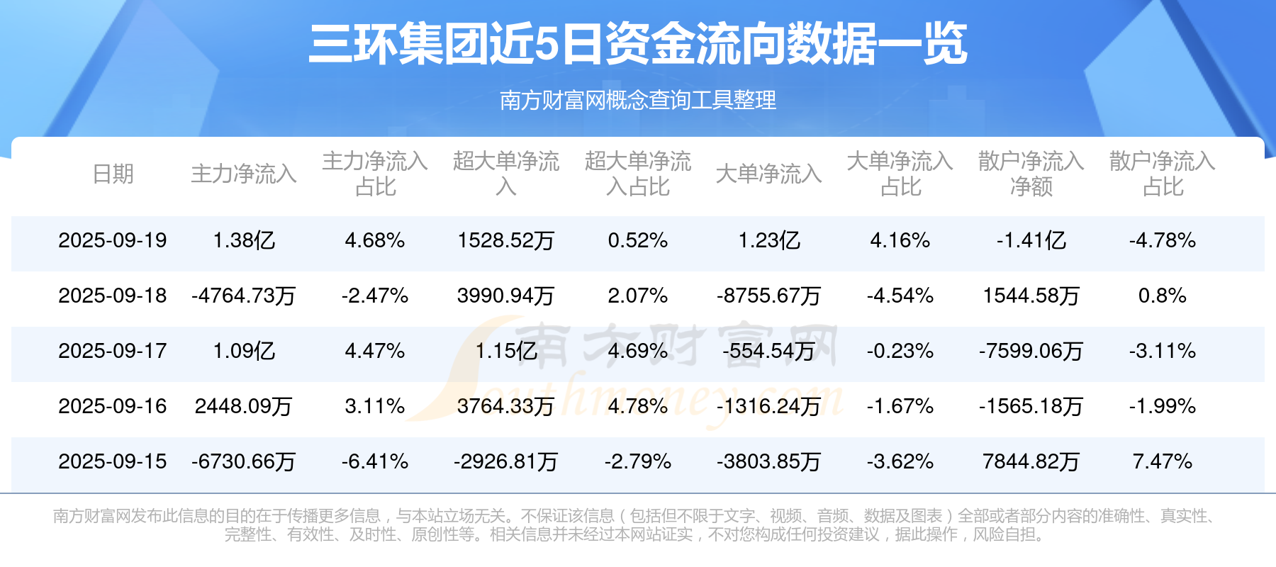 9月19日消息,三环集团9月19日主力净流入1.38亿元,超大单净流入1528.52万元,大单净流入1.23亿元,散户净流出1.41亿元。