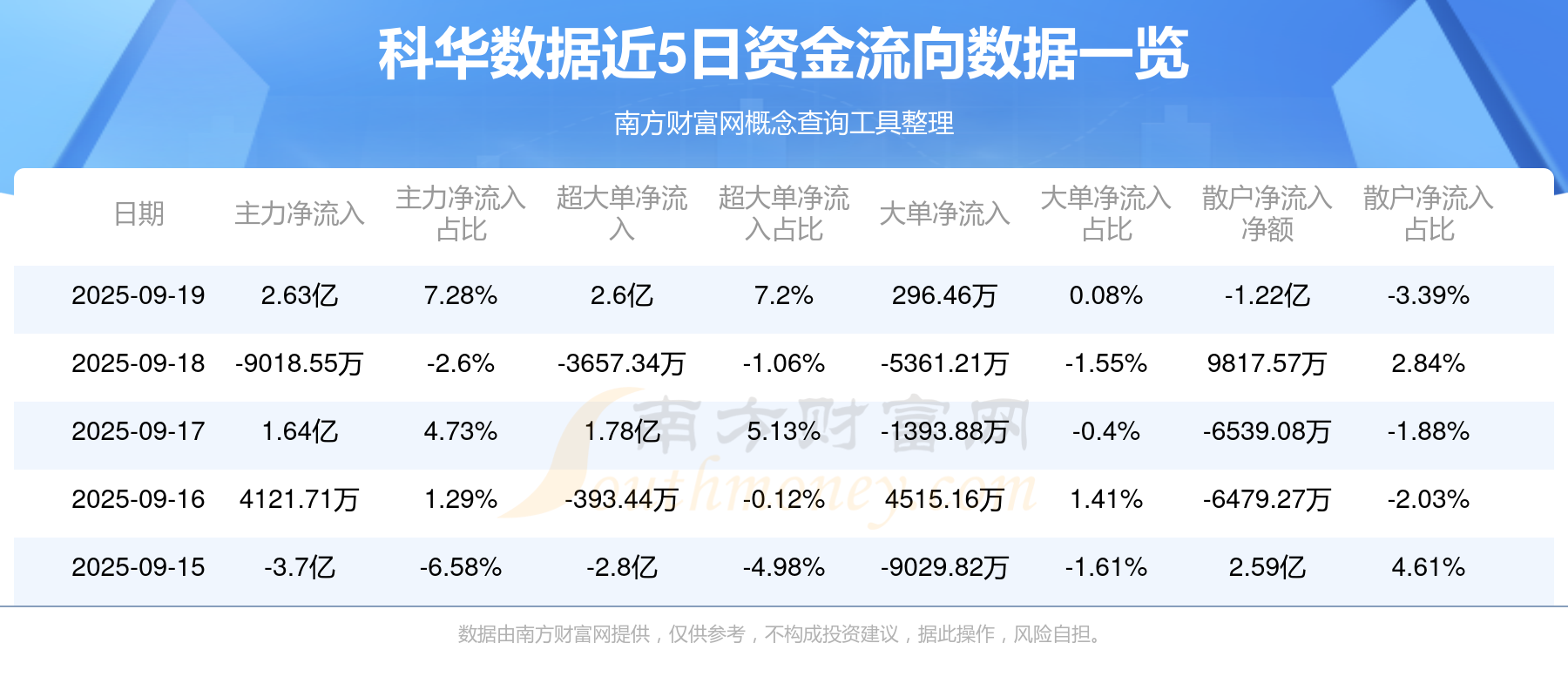 资金流向数据方面,9月19日主力资金净流流入2.63亿元,超大单资金净流入2.6亿元,大单资金净流入296.46万元,散户资金净流出1.22亿元。