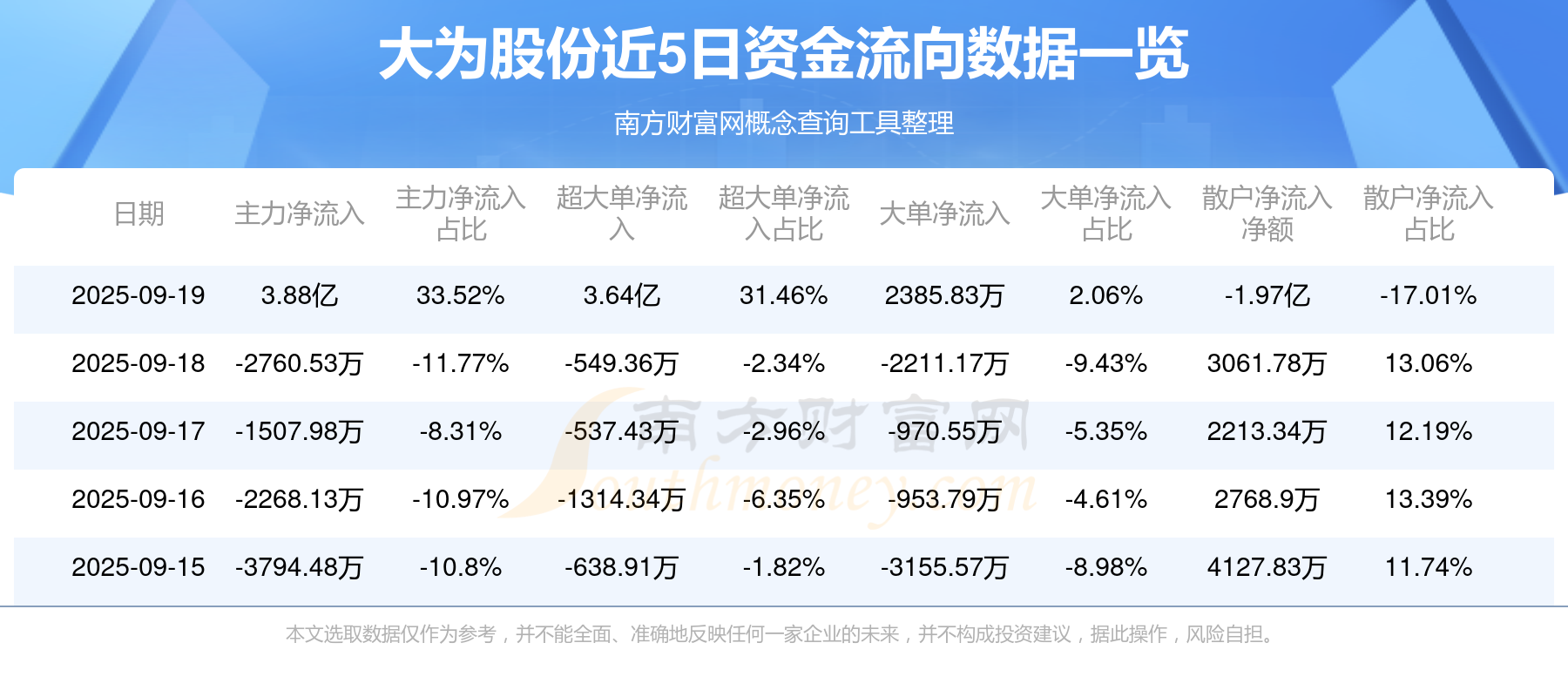 近5日资金流向一览见下表: