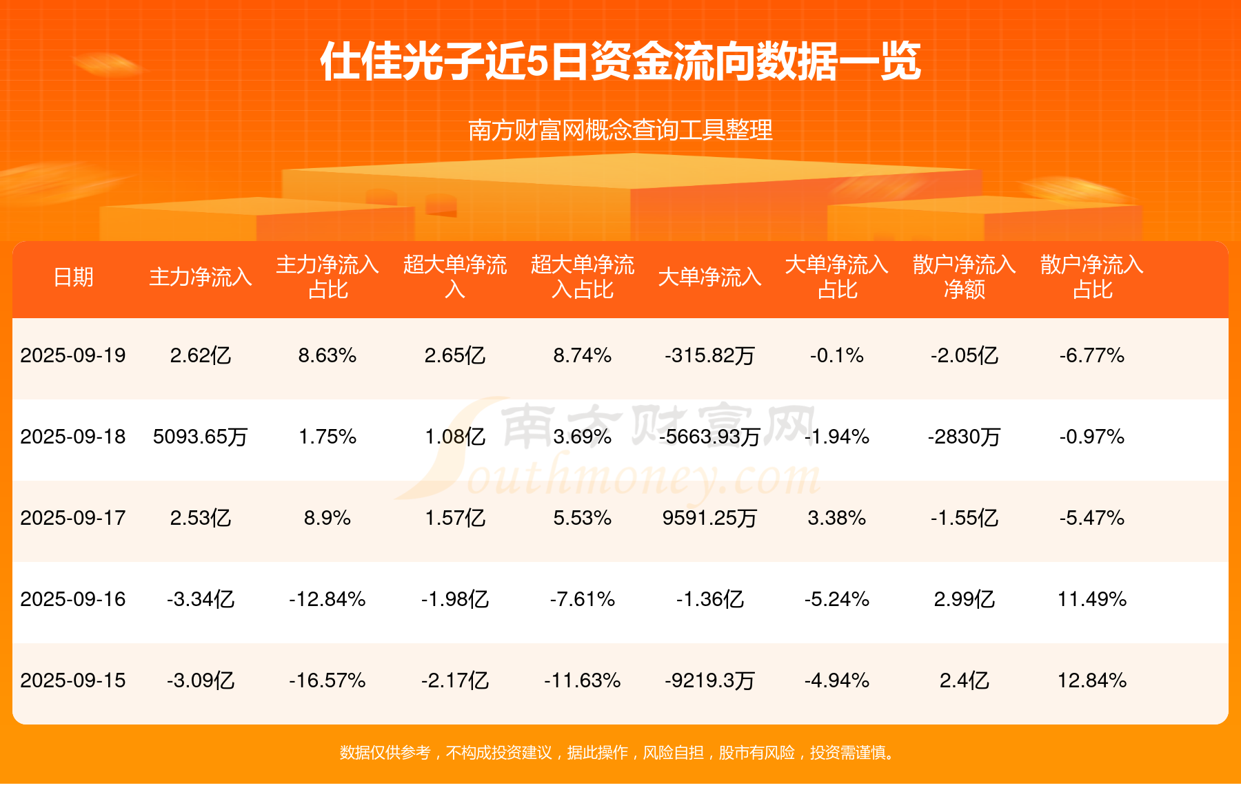 近5日资金流向一览见下表: