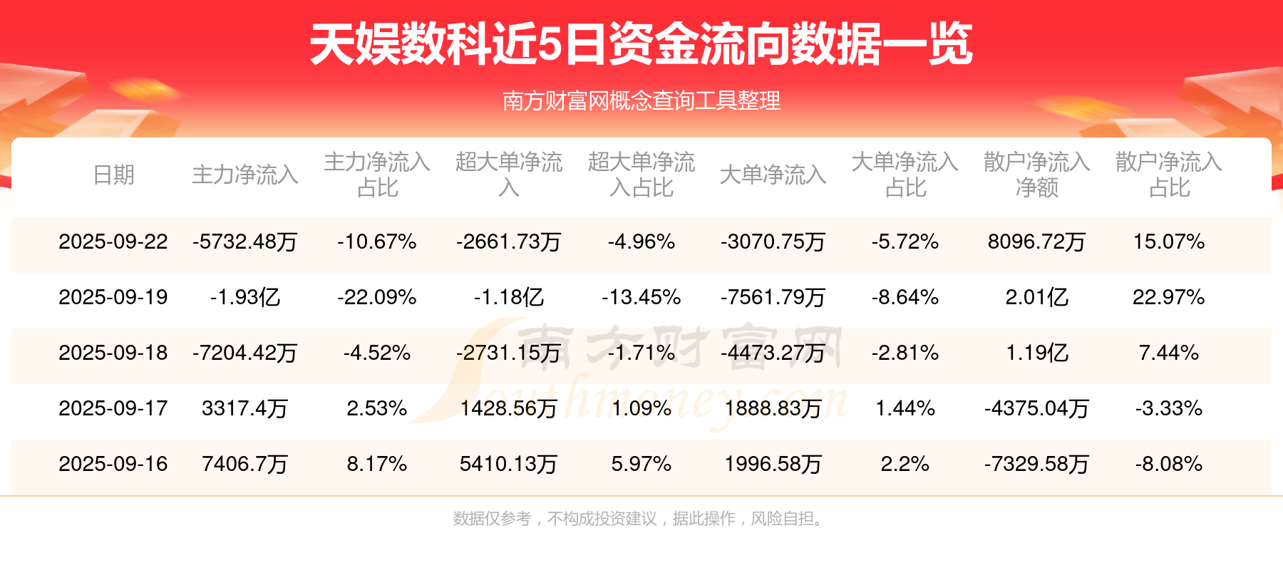 9月22日11时25分,天娱数科跌0.56%,报7.210元;5日内股价下跌2.91%,成交额5.37亿元,市值为119.3亿元。