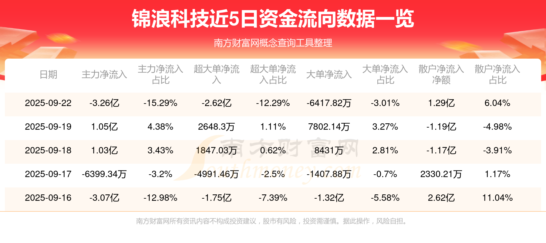 资金流向数据方面,9月22日主力资金净流流出3.26亿元,超大单资金净流出2.62亿元,大单资金净流出6417.82万元,散户资金净流入1.29亿元。
