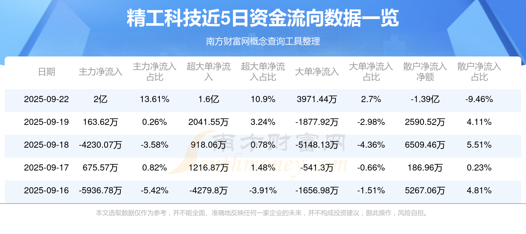 资金流向数据方面,9月22日主力资金净流流入2亿元,超大单资金净流入1.6亿元,大单资金净流入3971.44万元,散户资金净流出1.39亿元。