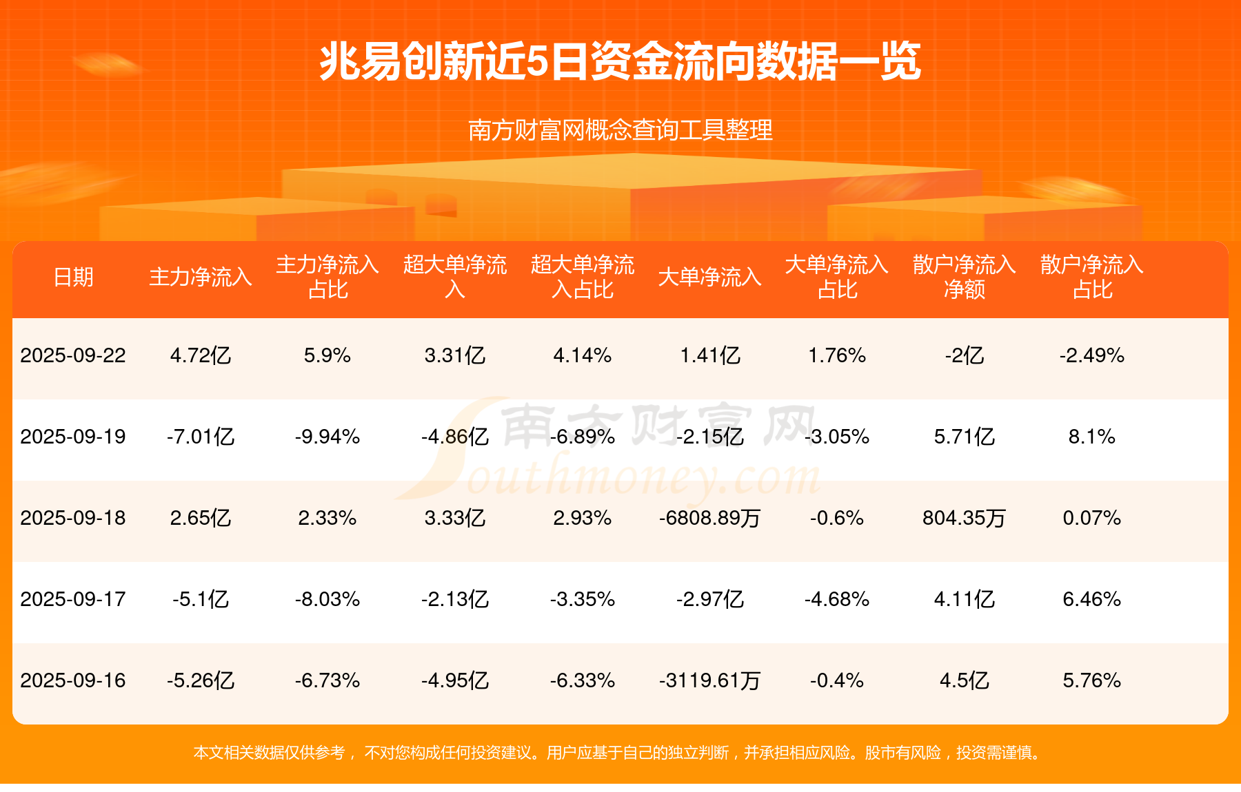 9月22日消息,兆易创新主力净流入4.72亿元,超大单净流入3.31亿元,散户净流出2亿元。