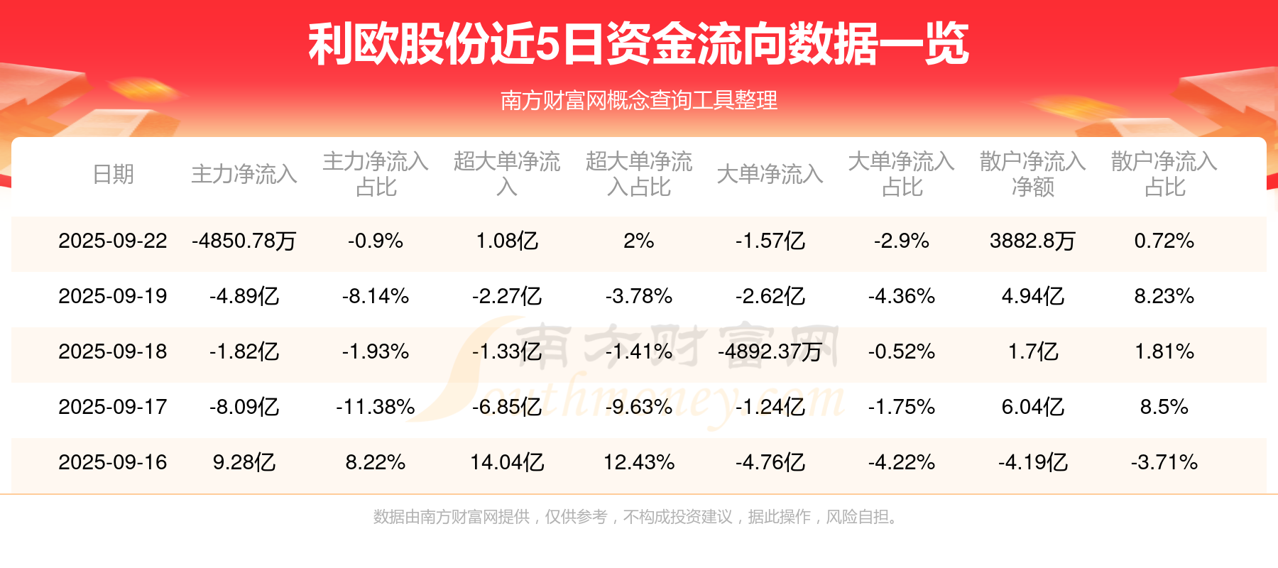 9月22日消息,利欧股份9月22日主力资金净流出4850.78万元,超大单资金净流入1.08亿元,大单资金净流出1.57亿元,散户资金净流入3882.8万元。