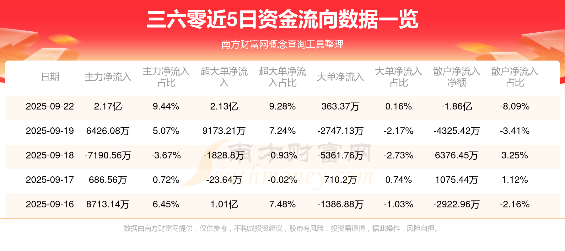 近5日资金流向一览见下表: