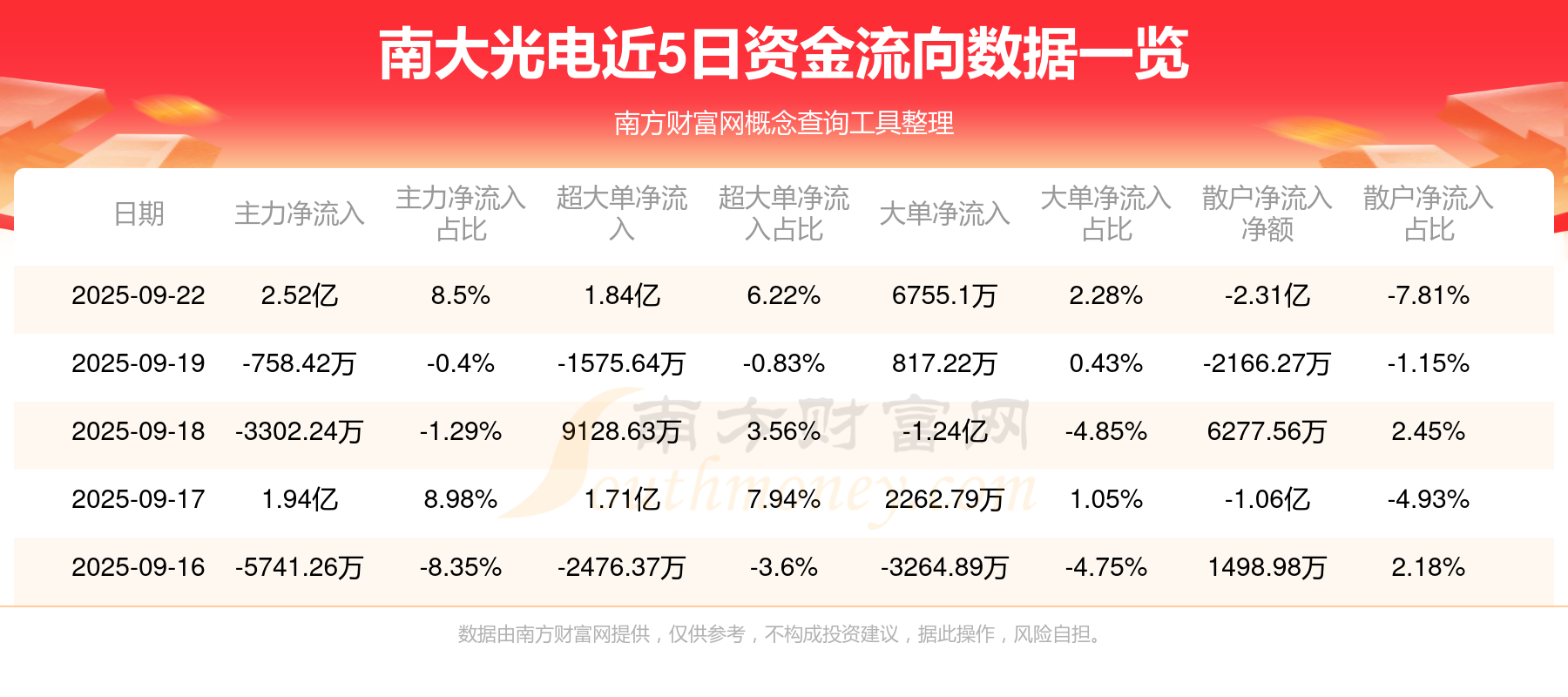 9月22日该股主力资金净流入2.52亿元,超大单资金净流入1.84亿元,大单资金净流入6755.1万元,中单资金净流出2041.39万元,散户资金净流出2.31亿元。