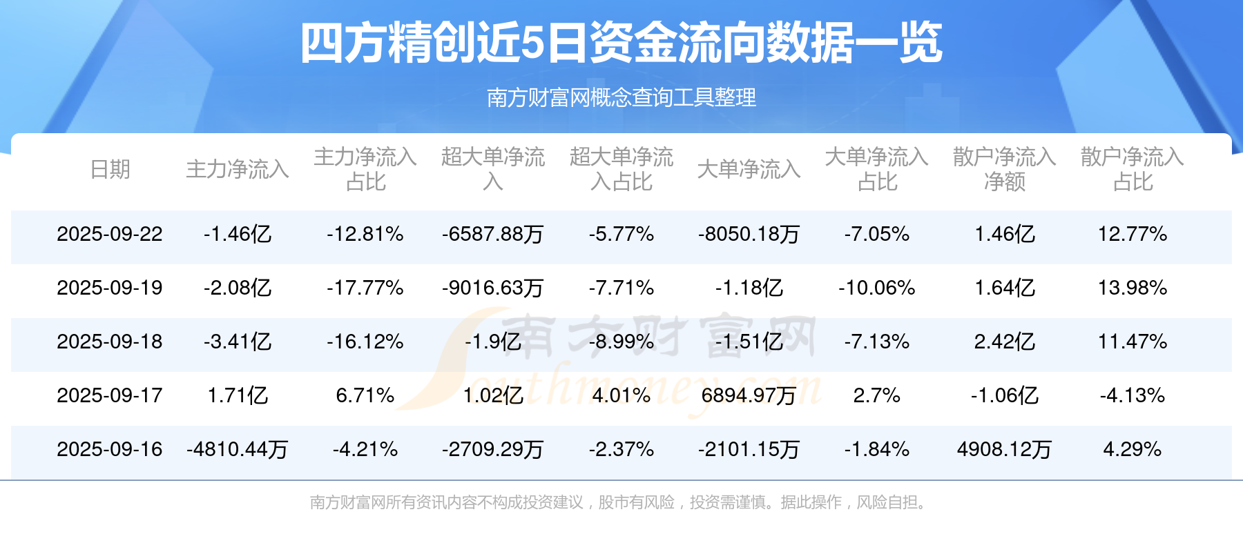 9月22日该股主力资金净流出1.46亿元,超大单资金净流出6587.88万元,大单资金净流出8050.18万元,中单资金净流入49.9万元,散户资金净流入1.46亿元。