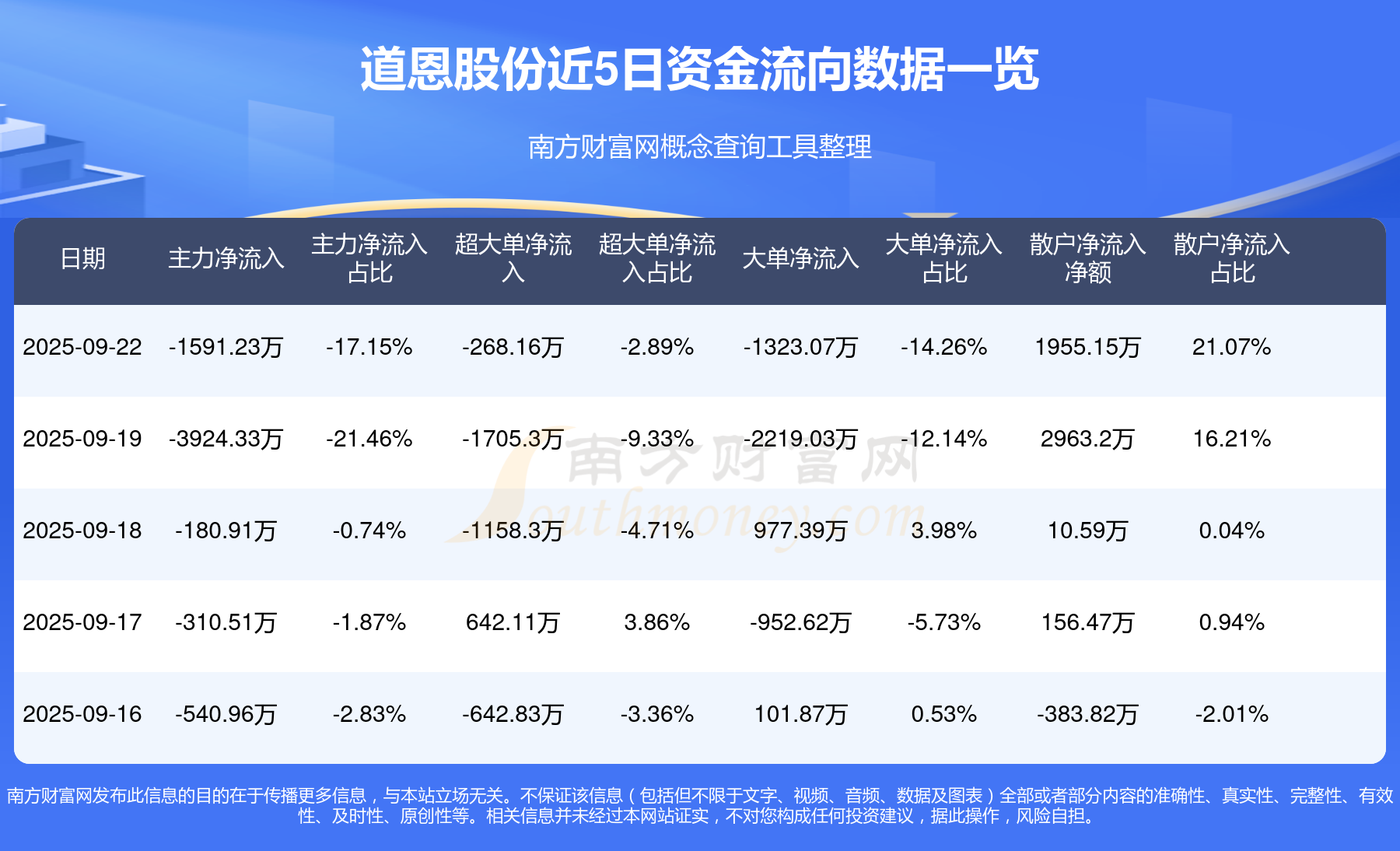 近5日资金流向一览见下表: