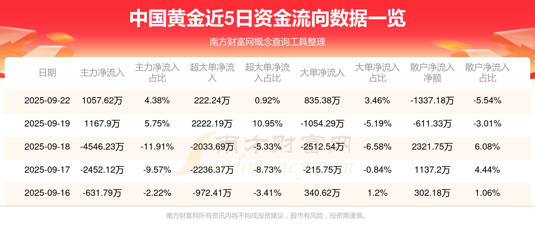 近5日资金流向一览见下表: