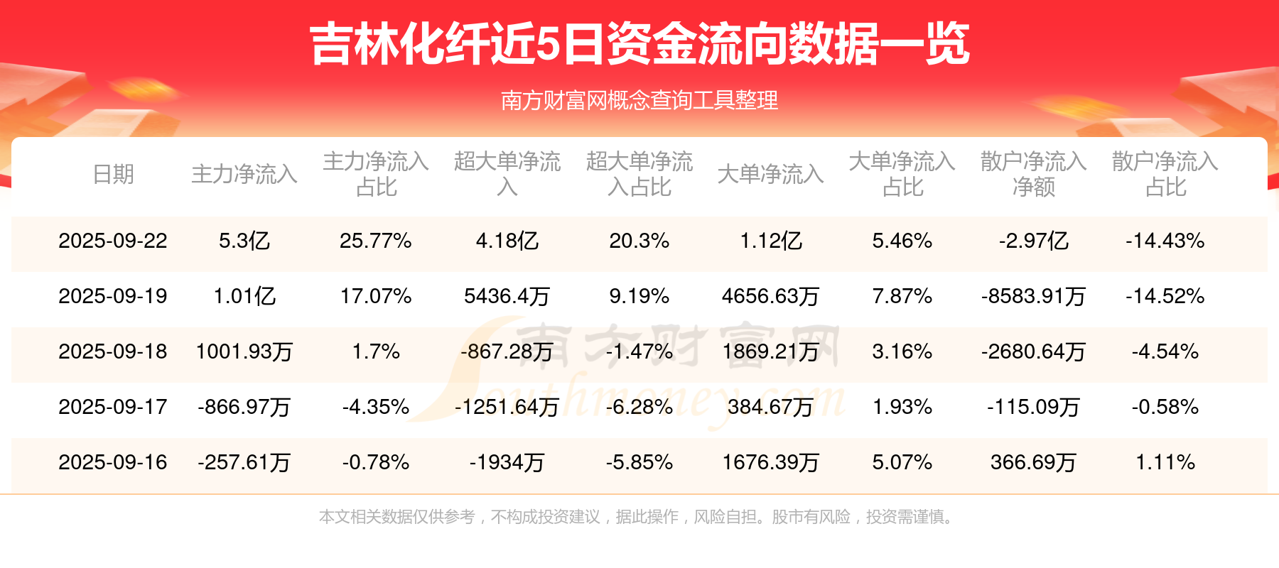 近5日资金流向一览见下表: