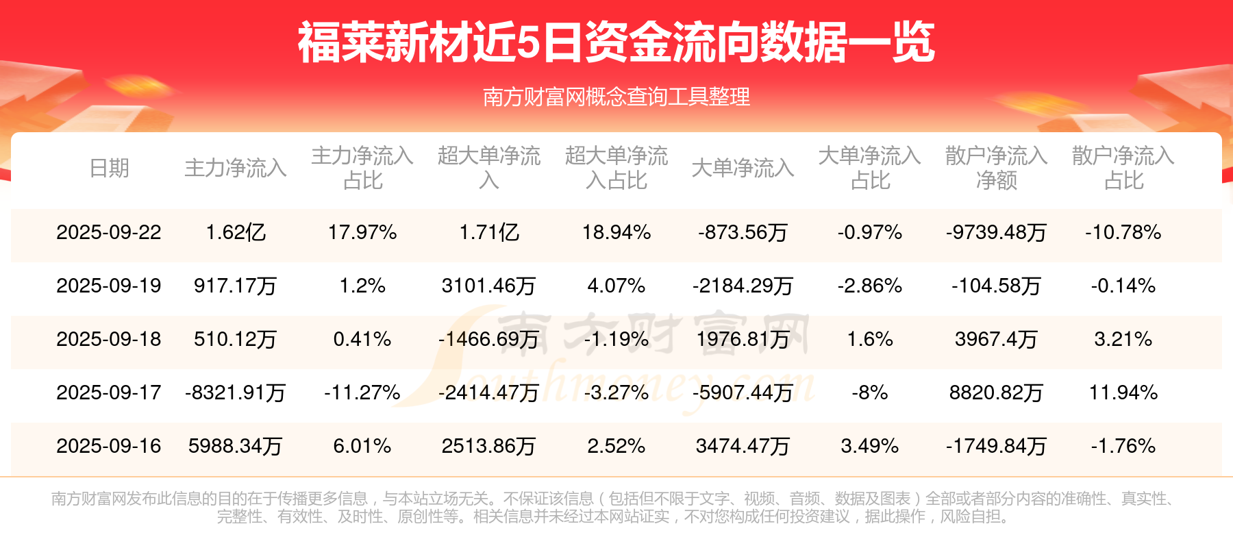 9月22日该股主力资金净流入1.62亿元,超大单资金净流入1.71亿元,大单资金净流出873.56万元,中单资金净流出6487.51万元,散户资金净流出9739.48万元。