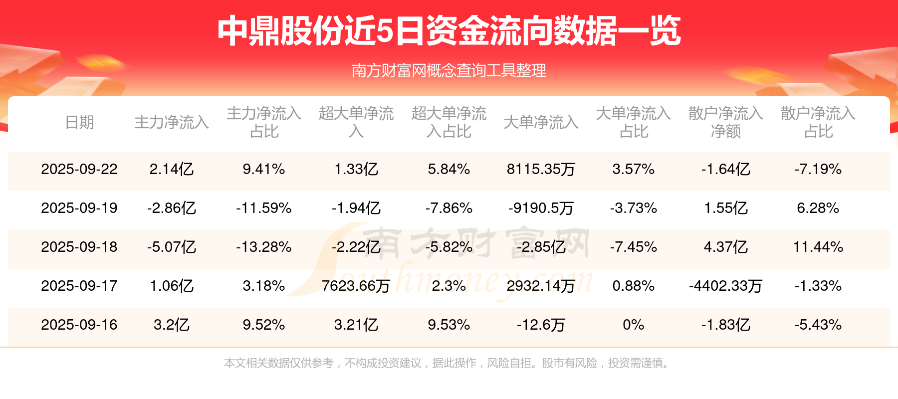 近5日资金流向一览见下表: